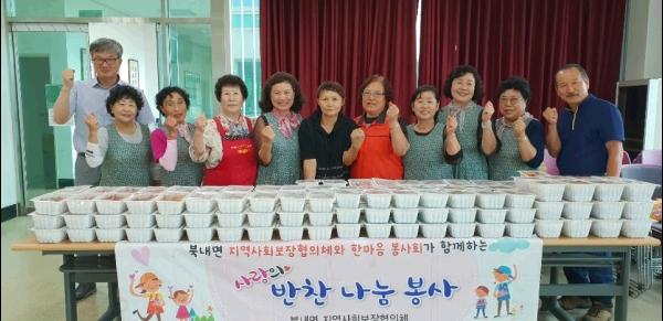 북내면 지역사회보장협의체와 한마음봉사회는 29일 북내 당우행복센터에서‘사랑의 반찬 나눔’ 봉사활동을 가졌다.