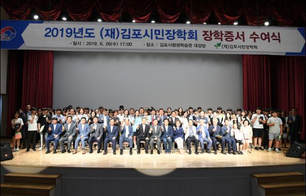 김포시민장학회는 지난 26일 김포시평생학습관 대강당에서 ‘2019년도 김포시민장학회 장학증서 수여식’을 개최했다.