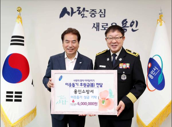 용인시는 28일 서은석 용인소방서장과 직원들이 백군기 시장실을 방문해 관내 어려운 이웃을 위해 사용해달라며 성금 600만원을 기탁했다고 밝혔다.