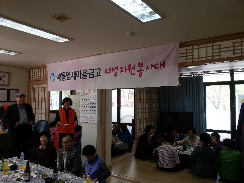 이날 중식 봉사활동은 죽림주공아파트 경로당 및 새마을문고에서 이루어 졌으며 봉사자들이 손수 재료를 준비하여 현장에서 음식을 만들어 제공하였으며 새통영새마을금고에서는 매년 광도면 관내 어려운 세대에 밑반찬 제공은 물론 경로당 중식 봉사활동을 해오고 있으며 또한 설․추석 명절을 기하여 불우 이웃돕기 성품도 지속적으로 기탁해오고 있다.