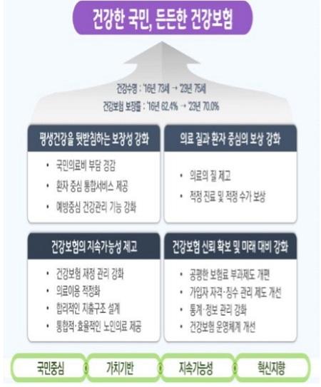 이번 시행계획은 ,평생건강을 뒷받침하는 보장성 강화 ,의료 질과 환자 중심의 보상 강화 ,건강보험의 지속가능성 제고 ,건강보험의 신뢰 확보 및 미래 대비 강화 등 제1차 종합계획에서 제시한 4대 추진 방향 별로 총 47개의 세부 과제가 담겨 있다.