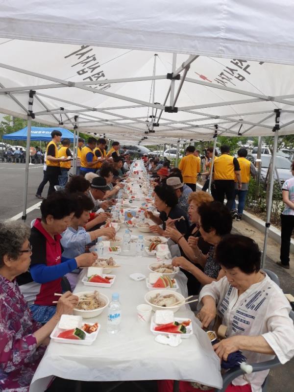 이번 행사는 한전KDN에서 재료비와 인력을 지원하였으며, 경기북부적십자 봉사자들과 지역 통장들이 함께 자금동 취약계층 어르신 300여 명에게 삼계탕과 과일을 제공했다.
