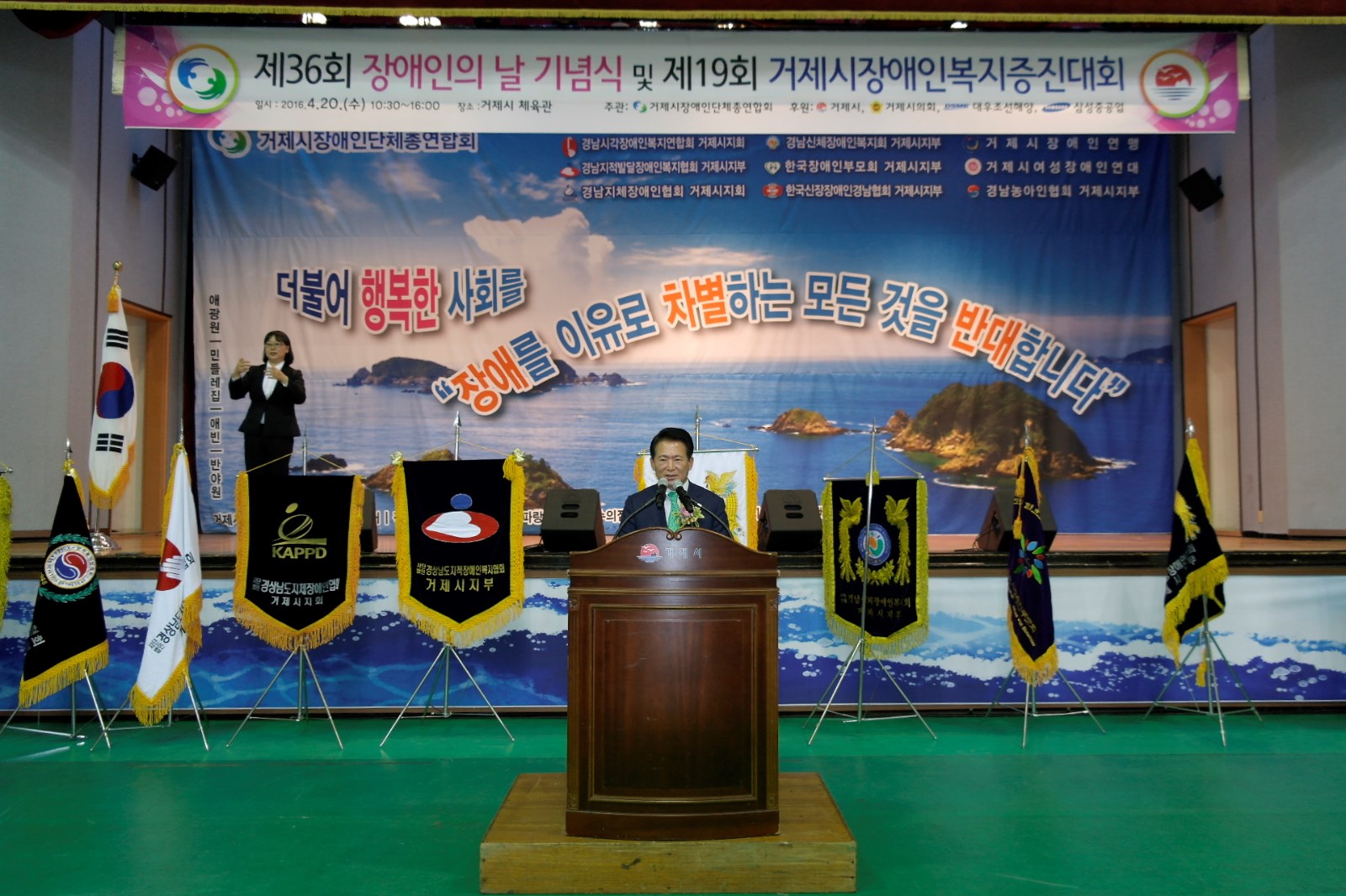 거제시장애인단체총연합회(회장 손복식) 주관으로 거제시장애인단체와 장애인복지시설 및 재가 장애인, 자원봉사자 등 800여명이 참석하여 「제36회 장애인의 날 행사」를 지난 20일(수) 거제시체육관에서 개최했다.
