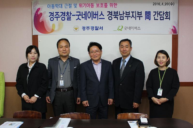 경주경찰서(서장 정흥남)는 4. 20.(수) 굿네이버스 경북남부지부(센터장 박용원)와 아동학대 근절과 위기아동 보호를 위한 실무자 간담회를 개최했다.