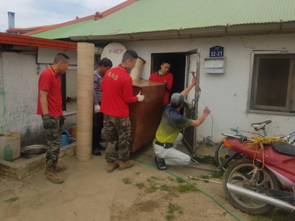 이번 대상가정은 가을1리에 거주하는 A씨 가정으로 노모와 지적장애가 있는 아들 3명이 거주하고 있으며 주택은 노후 된 흙집으로 집 실내에 쥐와 바퀴벌레 서식 문제로 인해 고통을 겪어 왔으며, 장판은 대부분 찢어지고 실내에서 신발을 신고 지낼 정도로 위생관념이 희박한 가정 이었다.