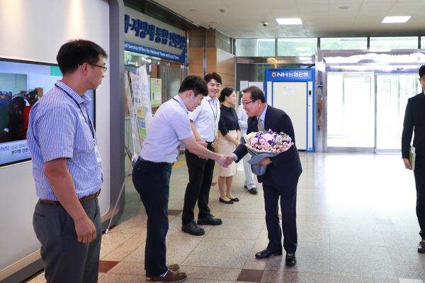 이어 9시에는 새로 부임한 박신환 부시장에게 임용장을 수여하고 환담했다. 또한 10시 30분에는 화도읍에 소재하는 동부보건센터 개소식에 참석해 지역주민들과 함께 했다.