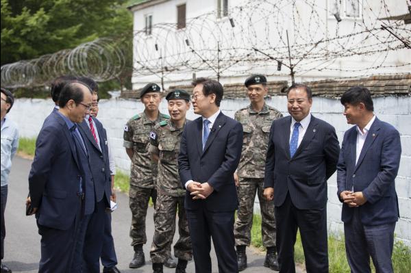 취임 1주년을 맞은 이재명 경기도지사가 별도의 기념식 없이 안보를 위해 희생하고 있는 경기북부지역 현장을 찾는 것으로 첫 일정을 시작했다. 이 지사는 이날 가평 지역 주민과 간담회를 갖고 40여년이 넘는 세월동안 군부대 소음으로 어려움을 겪고 있는 주민들에게 방음벽 설치를 약속했다.
