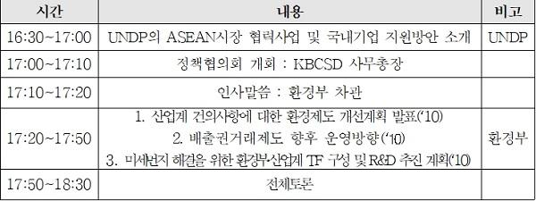 이번 회의에는 박천규 환경부 차관을 비롯한 환경부 주요 간부와 지에스건설, 에스케이이노베이션, 에스오일 등 30여개 기업 임원들이 참석할 예정이다.