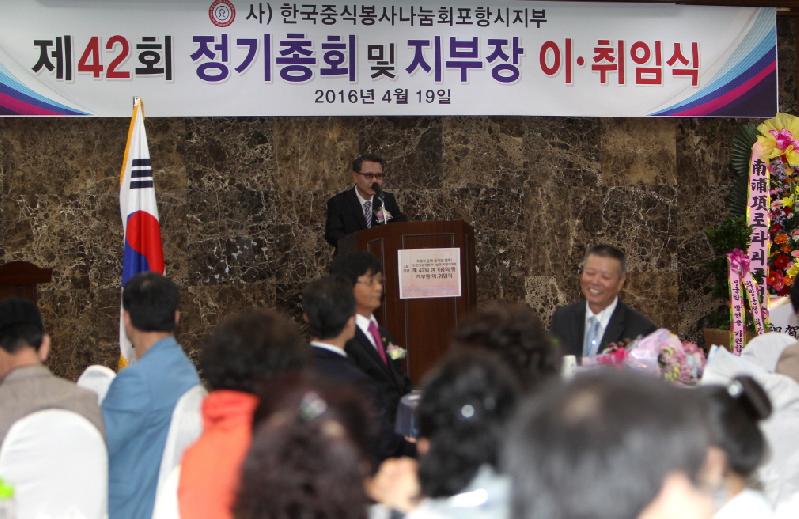 포항시 중화음식업협회(회장 김기성)는 지난19일 티파니웨딩에서 2016년 정기총회를 가졌다. 이 날 행사에는 이강덕 포항시장과 중화음식업협회 회장 및 내빈 등 200여명이 참석한 가운데 협회장 이․취임식을 갖고 식품위생 유공 회원에 대한 시상 및 장학금을 전달했다. 이와 함께 포항시에서 추진하고 있는 싱겁게 먹기 및 남은 음식재사용안하기에 적극 동참하기 위해 △친절한 손님맞이와 안전한 음식 제공 △부정불량식품 근절로 먹거리 안전 △최상의 서비스로 다시 찾고 싶은 업소 조성 등 시민건강 결의대회도 가졌다. 이강덕 포항시장은 “관광객들이 포항을 많이 찾고 있는 만큼 맛과 안전성은 물론 친절과 청결운동을 적극 실천해 다시 찾고 싶은 포항이 될 수 있도록 노력해 줄 것“을 당부했다. 한편, 중화음식업협회 지역의 소외 계층을 위해 자장면 무료 봉사활동을 지속적으로 펼쳐오는 등 밝고 따뜻한 사회를 위해 나눔과 봉사를 적극 실천하고 있다. 특히 지난해에는 창포복지회관과 지역 경로당 등 총 31회에 걸쳐 5,951명이 자장면 무료 봉사활동에 참여했다.