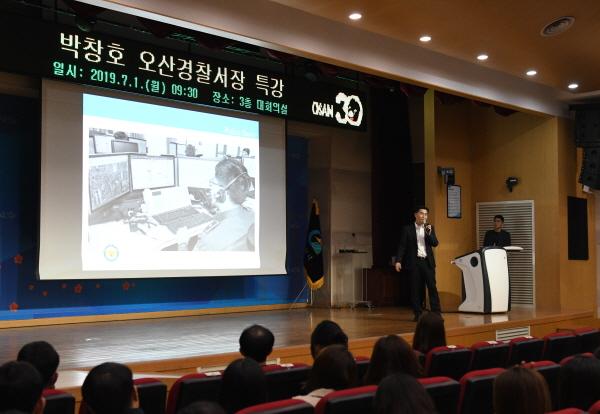 오산경찰서 박창호 서장은 1일 ‘폴리스 스토리’라는 주제로, 오산시청 대회의실에서 공무원 430여명을 상대로 특강을 실시했다.