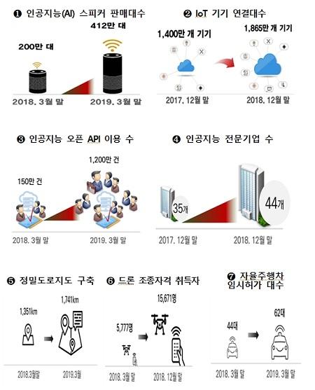 과학기술정보통신부는 인공지능 스피커, 드론·자율주행차, 핀테크 사업체, 스마트 공장 등 분야별 4차 산업혁명 지표를 발표했다.