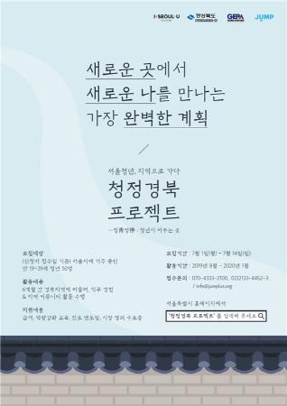 서울시와 경상북도는 서울청년의 다양한 일자리 경험과 지역 경제활성화를 위해 서울청년들이 경북도 내 5개 지역에 6개월 동안 머무르면서 다양한 경험을 통해 지역을 이해하고 근로활동을 할 수 있는‘청정경북 프로젝트’에 참여할 청년 참가자 50명을 모집한다고 밝혔다.