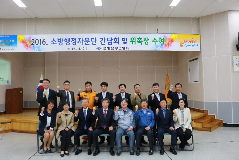 포항남부소방서(서장 김학태)는 21일 대회의실에서 새로운 소방의 정책개발 및 행정개선을 위해 소방행정자문위원 및 소방공무원 등 30명이 참석한 가운데 간담회 및 위촉식을 가졌다. 이날 간담회에서는 2016년 주요업무 추진계획 설명 및 국민소방행정 정책 추진에 따른 운영방향 등에 대한 토의를 하였으며 신임 소방행정자문단으로 위촉된 남영섭(에이케이켐텍 포항공장 상무)의 위촉식과 함께 심폐소생술교육 체험 순으로 진행되었다.김학태 포항남부소방서장은 “소방업무 전반에 항상 관심을 가지고 소방 발전을 위해 노력해 주시는 자문위원들의 노고에 감사드리며 앞으로도 든든한 조언자이자 소방파트너로써의 활동을 부탁드린다”고 당부했다.