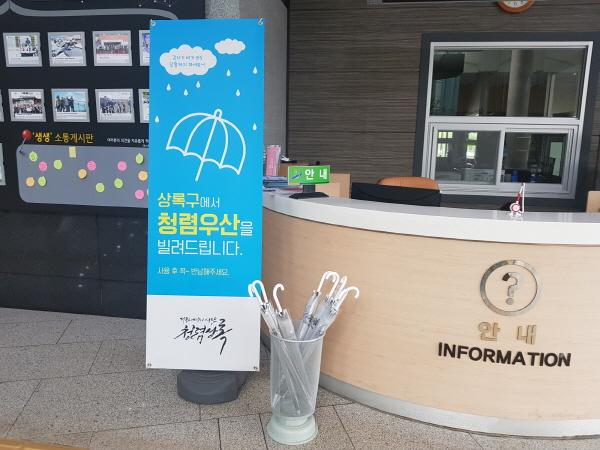 안산시 상록구는 갑자기 비가 눈이 오는 날을 대비해 ‘청렴우산’을 운영해 구청 방문 주민들에게 편의를 제공한다고 2일 밝혔다.