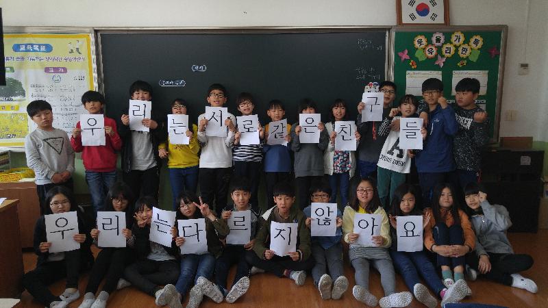 각 교실에서 학생들은 방송에 소개된 2가지의 장애이해 사례(우정은 믿음을 타고, 우리 아이도 상처받아요)를 시청하면서‘조금 빨라도, 조금 느려도, 우리는 다 같은 친구’, ‘다름을 인정하고 존중하는 마음’의 가치를 느껴보는 시간을 가질 수 있었다. 『대한민국 1교시』촬영에 참가한 6학년 학생은 “지난번에 컴퓨터실에서 생방송으로 시청할 때에는 별로 재미있는지 몰랐는데 편집된 방송을 보니 정말 재미있었다. 장애가 있는 친구도 감정이 있고, 우리와 똑같은 친구라는 것을 알게 되었다.”는 소감을 남겼다. 이번 촬영에 협조를 했던 박창민 선생님은“직접 참여를 해서 그런지 학생들이 이 프로그램을 예전보다 적극적으로 시청한 것 같다. 장애인을 위해 존중하고 배려하겠다는 각자의 마음가짐들을 나눌 수 있는 좋은 기회였다.”고 전했다. 이번 장애 이해 교육을 통해 틀림이 아닌 다름을 인정하고, 모두가 함께 더불어 살아가는 사회로 한 발짝 더 다가갔기를 소원해본다// 최귀복 기자 choi5814@hanmail.net