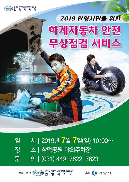 안양시는 여름 휴가철을 앞두고 오는 7일 오전 10시부터 오후 4시까지 삼덕공원 야외주차장에서 자동차 무상점검서비스를 실시한다고 밝혔다.
