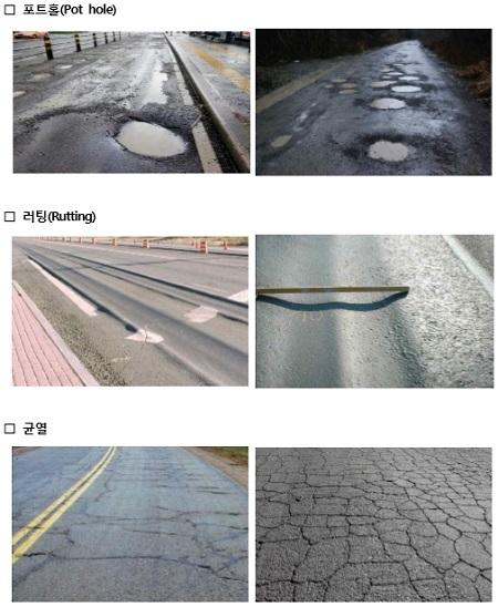 포장 재료 개선 기술은, 아스팔트 혼합물에 에폭시 실란계와 같은 첨가제를 첨가하거나 골재를 코팅해 결합력 자체를 향상시키는 기술이 대표적이고, 보수 시스템 및 장비에 관한 기술은, 차량 통신 네트워크 또는 무인비행체의 영상을 통해 아스팔트 포장 파손 부위를 탐지하는 기술과, 빠른 보수가 가능하도록 보수에 필요한 장비를 일체화시켜 소형화, 자동화하는 기술 등이 포함된다.