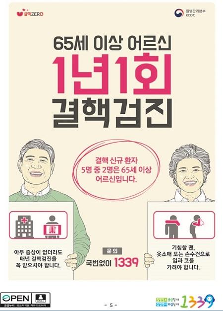 65세 이상 어르신은 면역력 감소로 결핵에 취약하고 실제 걸리더라도 기침·발열·객담 등의 증상이 잘 나타나지 않기 때문에 적극적인 결핵검진이 필요하다.