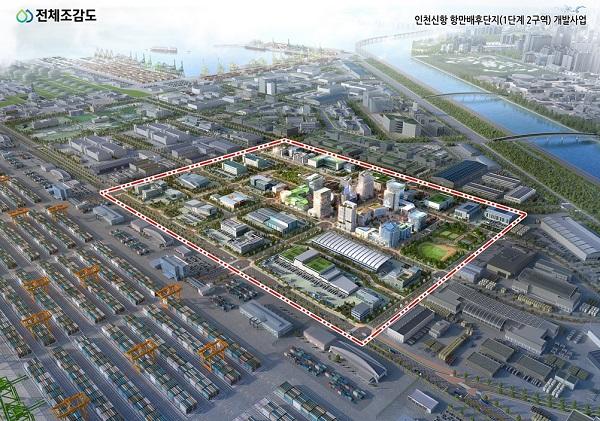 사업대상지는 인천신항 1단계 배후단지 면적 214만㎡ 중 2구역 94만㎡이며, 주요 도입시설은 복합물류 및 제조시설, 업무 편의시설이다. 1구역은 올해 12월 준공될 예정이며, 현재 인천지방해양수산청과 인천항만공사가 입주기업을 모집하고 있다.