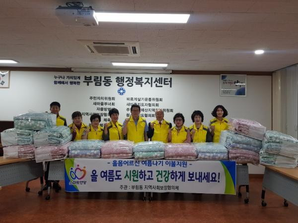 안양시 부림동 지역사회보장협의체는 2일 어려운 홀몸어르신 15가구에 여름이불세트를 전달했다고 밝혔다.