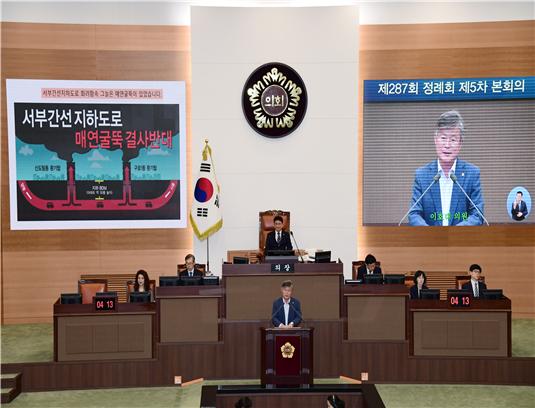 서울시의회 기획경제위원회 이호대 의원은 지난 6월 28일 제287회 정례회 본회의 5분 자유발언을 통해 서울시의 서부간선도로 지하화사업 정화장치 설치과정에서 주민과의 소통 없는 일방적인 사업 추진을 지적하고 의견수렴의 책임을 다할 것을 당부했다.
