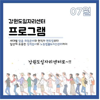 강원도일자리센터가 매월 제공할 프로그램은 세대별 맞춤 서비스와 현직자 멘토링, 성격검사 등 취업준비과정에서부터 노동법률&자산관리 등 취업 후에도 유용한 프로그램을 각계 전문가를 초빙해 진행될 예정이다.