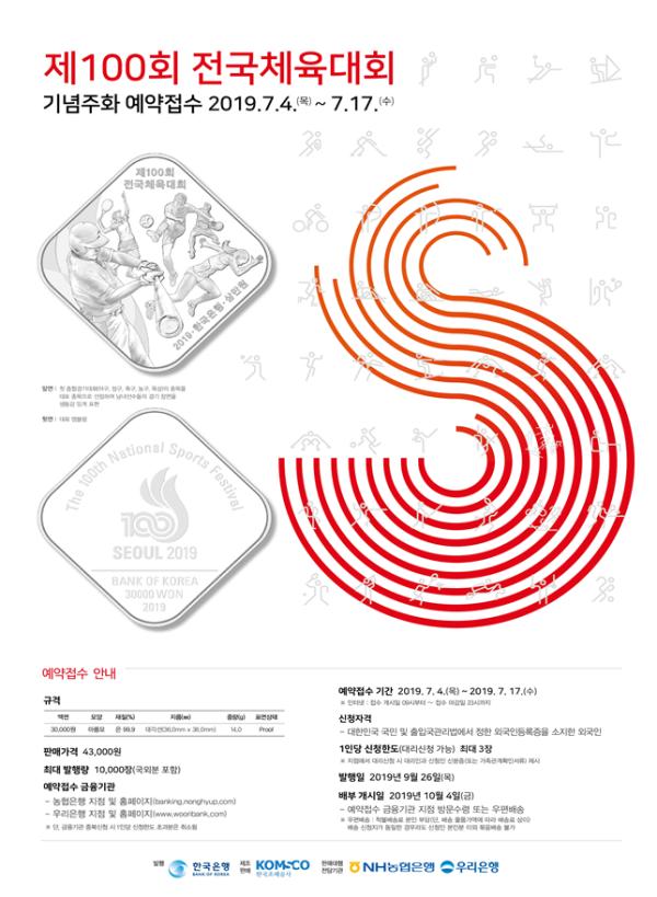 역사적인 ‘제100회 전국체전 및 제39회 전국장애인체전’개최를 기념하기 위해 전국체전 역사 최초로 발행하는 한국은행 기념주화가 사전예약 접수를 시작한다. 서울시는 오는 4일부터 17일까지 2주간 기념주화 판매 지정은행인 우리은행과 농협은행 각 지점에서 예약 접수를 진행한다고 밝혔다.