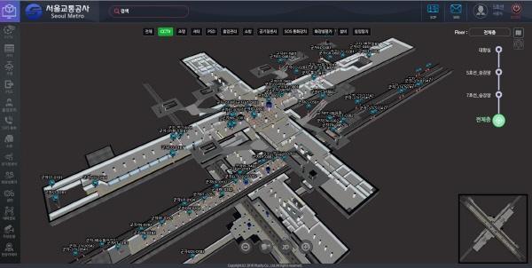 지능형 CCTV는 화질이 200만 화소 이상으로 높고 객체인식 기능이 탑재돼 있어 제한구역에 무단침입이나 역사 화재 등이 발생했을 때 실시간으로 알려준다. 지하철 역사 내부를 3차원으로 표현함으로써 위치별 CCTV 화면을 통한 가상순찰도 가능하다.