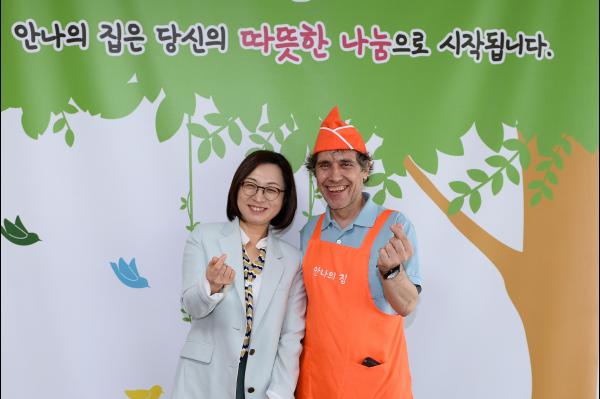 은 시장은 이곳 노숙인 무료 급식소를 운영해 국민훈장 동백장을 받은 이탈리아 출신의 김하종 신부와 4명의 직원들을 격려하고, 정기적으로 활동하는 배식 봉사자들에게 감사의 인사를 했다.