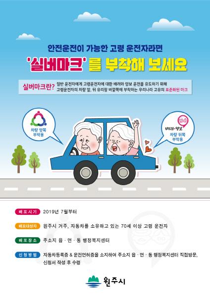 원주시가 매년 증가하는 고령운전자 유발 교통사고를 예방하기 위해 ‘고령운전자 실버마크’를 제작해 배포한다.