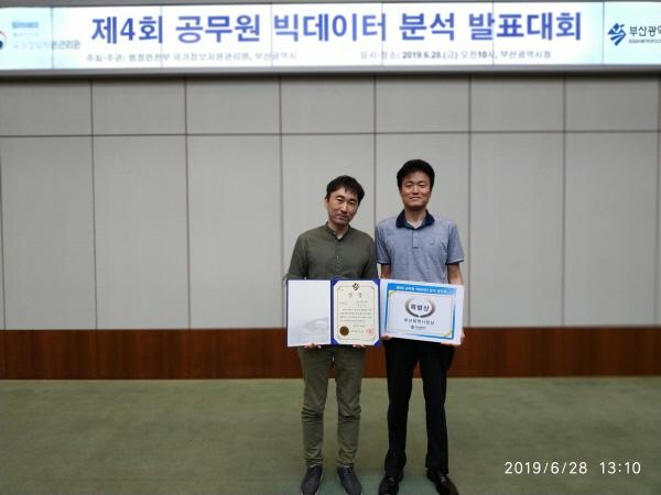 원주시 정보통신과 이강식 행정정보담당과 김기태 주무관이 지난 6월 28일 국가정보자원관리원 주관으로 부산에서 열린 ‘제4회 공무원 빅데이터 분석 공모전’에서 특별상을 수상했다.
