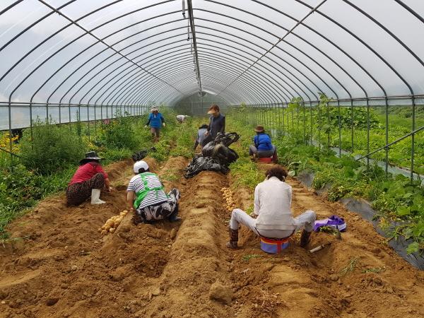 작년에 이은 가뭄에도 하우스 관리에 더욱 매진해 500Kg의 감자를 수확했고, 수확한 감자는 올초 결연사업으로 맺어진 후원이웃을 포함 홀모어르신, 저소득층 등 돌봄이 필요한 이웃에게 직접 방문, 전달한다.