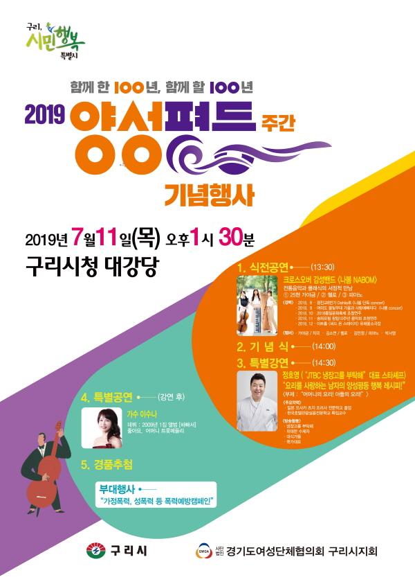 이 외에 부대행사로 행사장 로비에 양성평등 인식 개선을 위한 양성평등 공모전 입상 포스터 전시와 젠더 폭력에 대한 각성과 예방을 위한 ‘보라데이 폭력 예방 캠페인’, 참가자들을 위한 특별 공연, 행운의 경품 추첨의 시간도 진행된다. 행사에 참여하고자 하는 구리 시민은 누구나 선착순으로 입장이 가능하다.