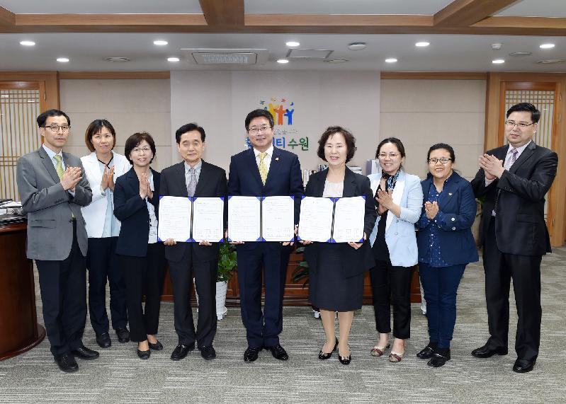 수원시는 관내 저소득층 아동 건강을 위해 경기도의료원 수원병원, 수원지역아동센터연합회와 무료 의료지원 서비스를 위한 업무협약을 22일 체결했다.
