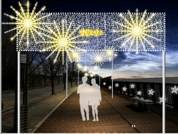 모래톱공원에는 대형조형물의 ‘별빛 판타지’, ‘천사들의 합창’과 함께 각종 포토존으로 로맨틱하고 판타지한 공간을 연출했으며 예술공원에는 다양한 색상의 RGB공으로 포인트를 주고 내부에 LED 사슴과 독특한 포토존 및 은은한 수목 투사 등으로 숲속동물마을을 조성했다.