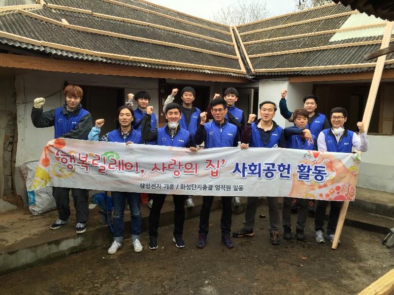 올해 3년째를 맞는‘행복릴레이 사랑의 집’은 건설, 전기 등 시설분야를 담당하는 삼성전자 소속 임직원들의 재능기부로 화성시와 용인시 취약계층의 집 수리를 돕는 사회공헌 활동이다.