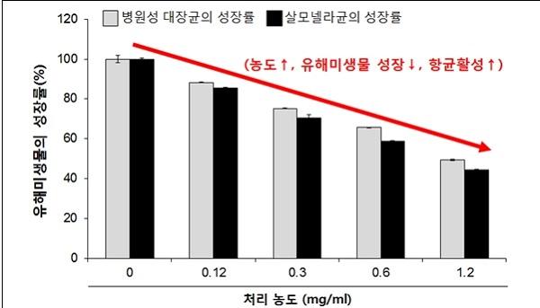 연구진이 지난해 우선적으로 53주의 배양액 추출물에 대한 항균력을 분석한 결과, 10주의 자생 미생물이 병원성 대장균과 살모넬라균에 대해 우수한 항균 활성을 보이는 것으로 나타났다.