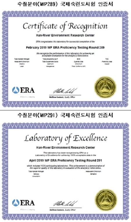 환경부 소속 국립환경과학원의 한강물환경연구소는 미국 환경자원협의회가 주관하고 전 세계 1,028곳의 분석기관이 참여한 국제공인숙련도시험 수질 분야에서 최근 인증서를 획득했다고 밝혔다.