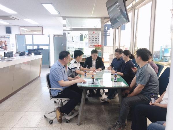 홍인성 인천 중구청장은 지난 6월 29일 오전 1시 05분경 옹진군 자월도 북방 3해리 인근 해상 삼표38호에서 연료유 자체이송 중 기름이 유출되는 사고로 인한 관내 기름 유입에 대비하고자 하늘바다 파출소를 방문했다.