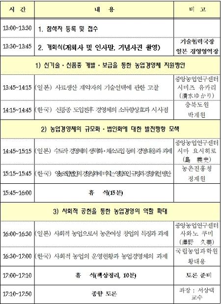 또한, 농업경영 법인의 경영지속성을 위한 과제, 농업생산자의 기술선택에 관한 시사점 등도 논의 될 예정이다.