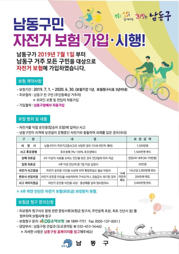 인천 남동구 주민이면 누구나 365일 전국 어디서나 자전거 사고로 인한 보험 혜택을 받을 수 있게 됐다.