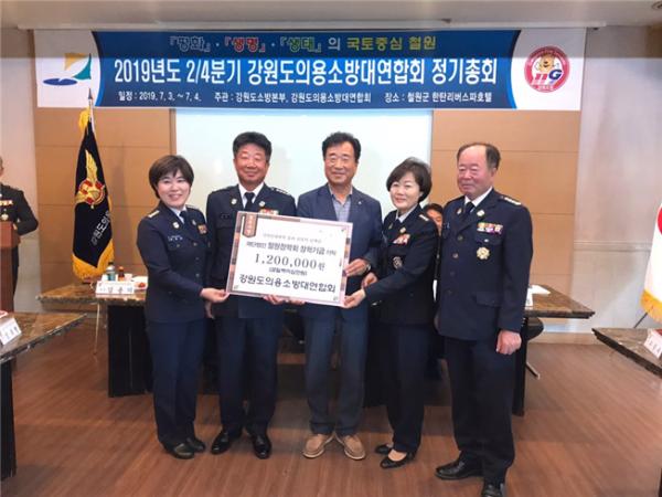 “강원도의용소방대연합회가 3일 오후 2시 30분에 철원군 한탄 리버스 호텔에서 철원군에 120만원의 장학금을 기부했다.”고 3일 강원소방본부가 밝혔다.