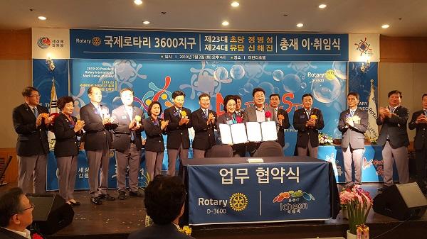 이천시는 2일 이천 미란다호텔에서 열린 국제로타리 3600지구 총재 이·취임식에서 관내 저소득 취약계층 복지증진을 위한 업무협약을 체결하고 상호간의 이해 및 협력을 통해 공동의 노력을 다하기로 합의했다.