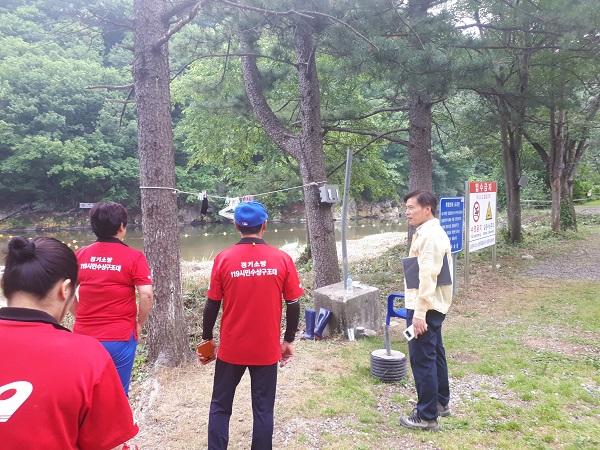 이군희 센터장은 물놀이 관리지역에 근무 중인 수상안전요원들을 격려하며 “물놀이 안전사고 예방에 최선을 다해줄 것”을 당부하고 “물놀이 이용객들은 반드시 구명조끼를 착용할 것”을 부탁했다.
