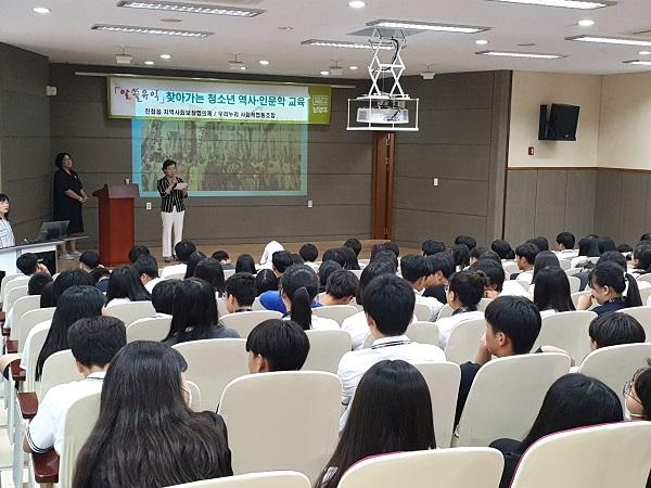 이번 역사와 인문학 특강은 현재 방영중인 역사드라마‘녹두꽃’으로 보는 동학혁명과 민주주의를 주제로 드라마 주인공들이 짤막하게 소개되는 영상과 역사인식, 근현대사의 민주주의를 흥미롭고 진지하게 전달했다.