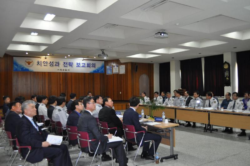 거제경찰서(서장 김영일)는 25일, 3층 강당에서 각 기능별 과장ㆍ계장 및 지․파출소장 등 43명이 참석한 가운데 2016년 4월 치안성과 전략 보고회를 개최했다.