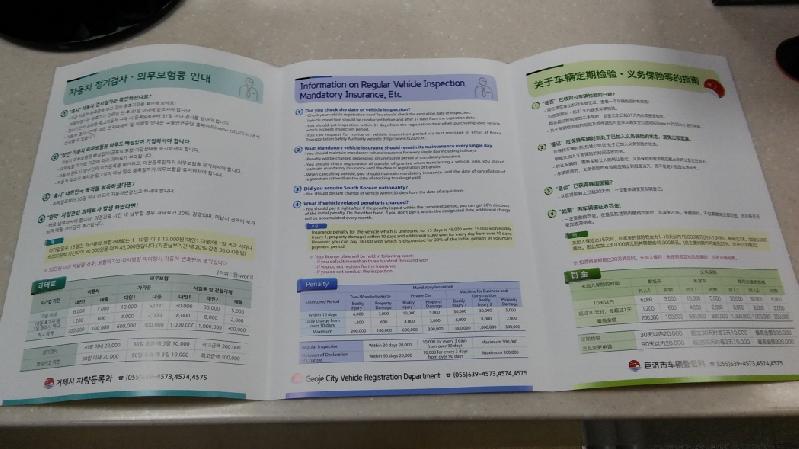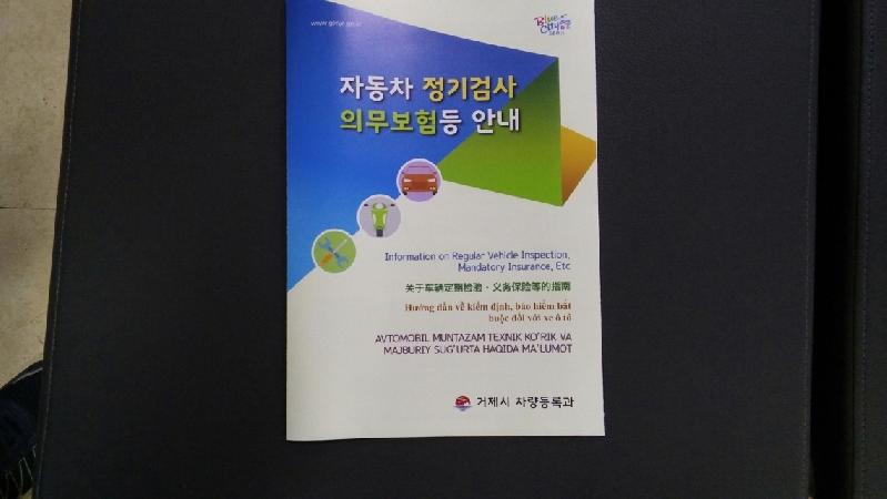 이에 따라 거제시는 외국인들도 자동차 관련 법규를 쉽게 이해할 수 있도록 정기검사, 의무보험 가입과 관련된 정보를 체계적으로 정리하여 다국어로 된 리플릿을 제작하였다.