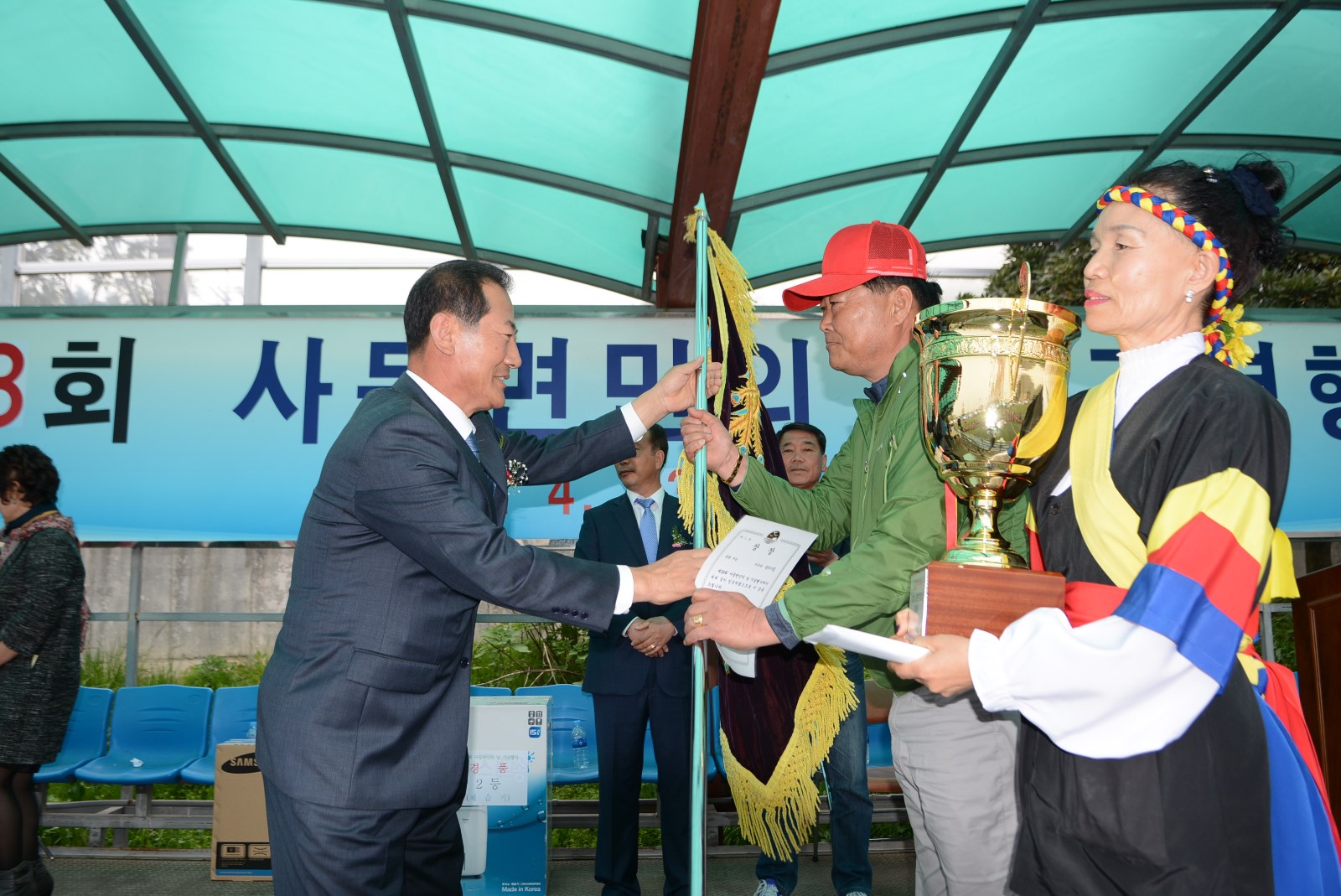 개회식에는 김한표 국회의원, 강해룡 거제시 부시장, 황종명 도의원, 임수환, 진양민, 조호현 시의원, 이휘학 거제시산림조합장, 이윤재 거제시체육회 상임부회장, 김종환 재창원사등향인회장 등 관내외 내빈을 비롯한 30개마을 주민 1천여 명이 참여했다.