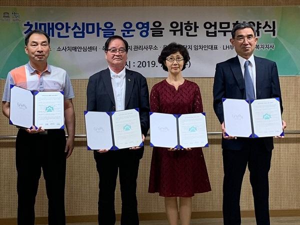 소사보건소·소사치매안심센터는 지난 3일 옥길LH 1단지를 치매안심마을로 지정·운영하기 위해 옥길LH 1단지 주민대표 및 관리사무소·LH부천권 주거복지지사와 업무협약을 체결했다.