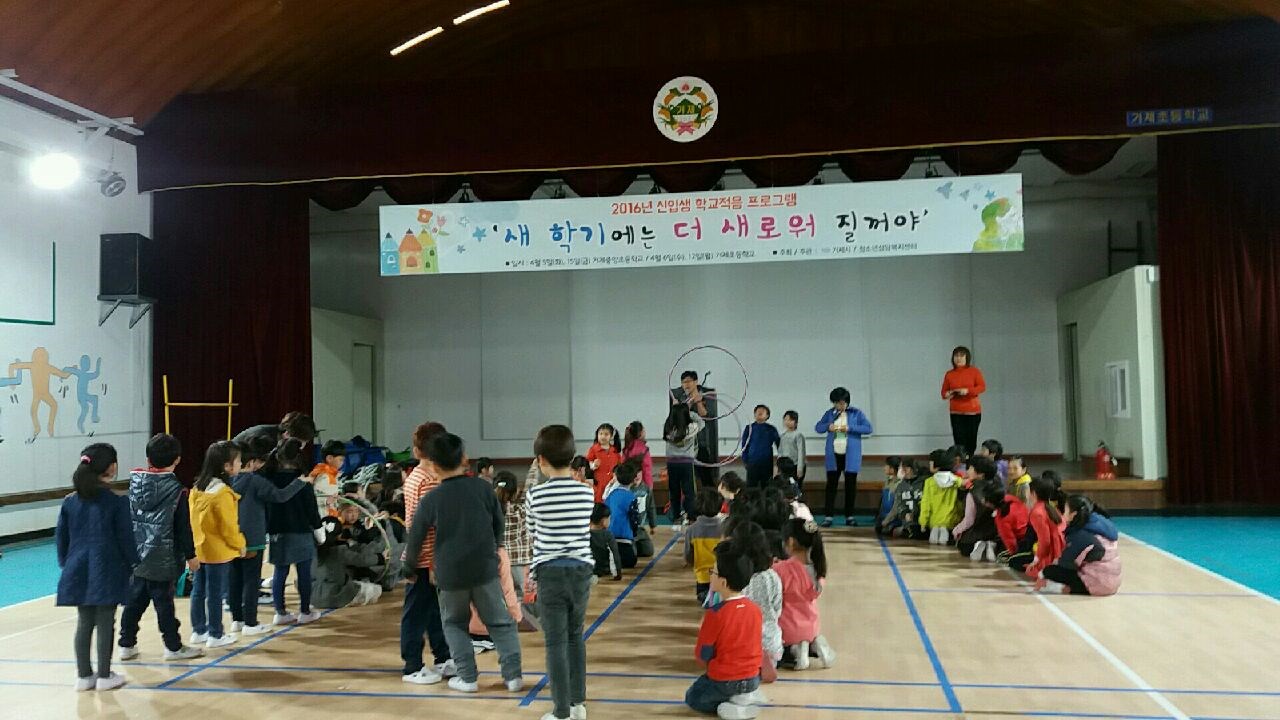 신입생을 위한 학교적응 프로그램은 4월 12일(화) 거제초 1~2학년, 4월 15일(금) 거제중앙초 1학년 275명에게 전문 레크레이션 강사의 진행으로 간단한 준비운동과 훌라우프, 토이봉, 볼을 이용한 친해지기 게임, 꼬리 잇기, 줄다리기와 이어달리기 등의 협동심을 기르는 어울림 한마당 중심의 프로그램을 실시하여 새로운 출발을 시작하는 신입생들의 학교적응에 큰 도움을 주었다.